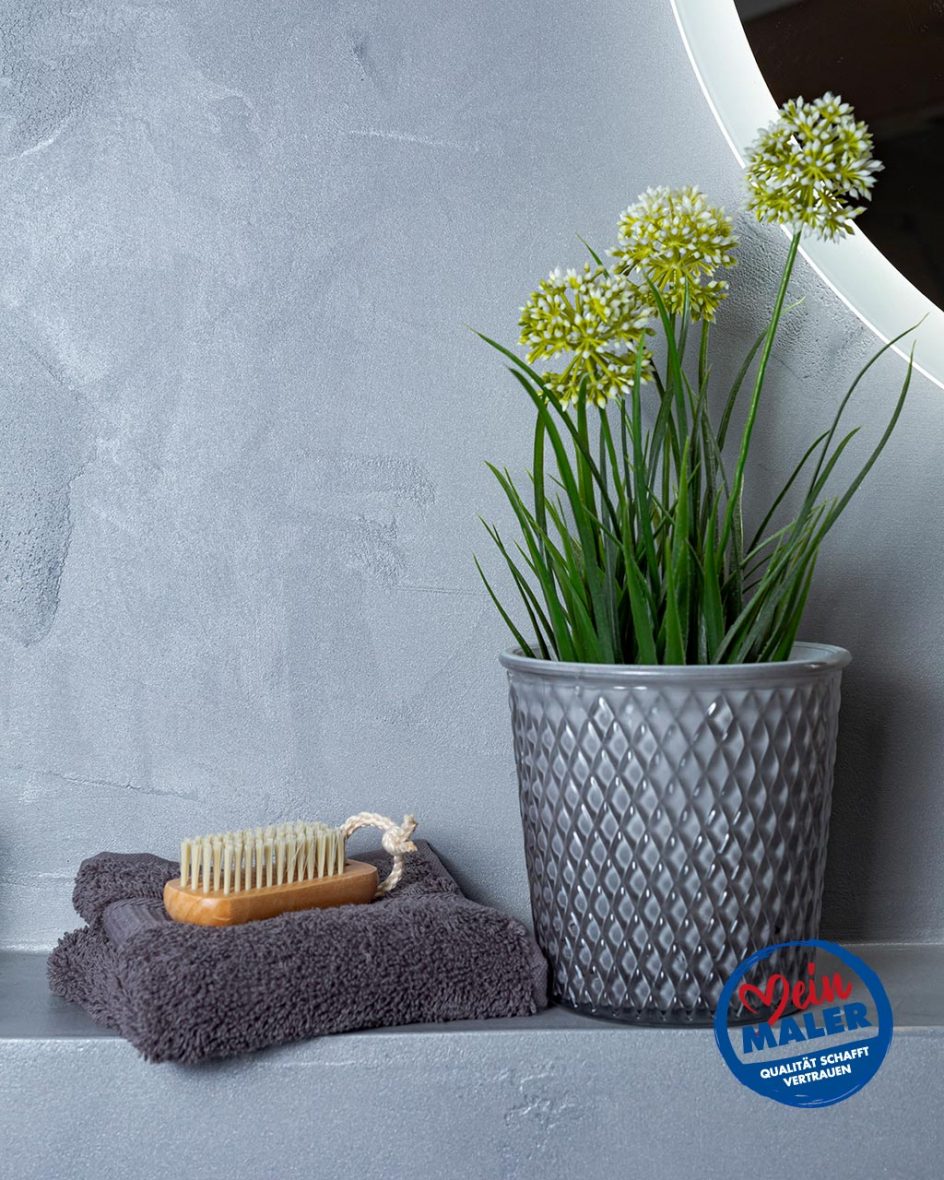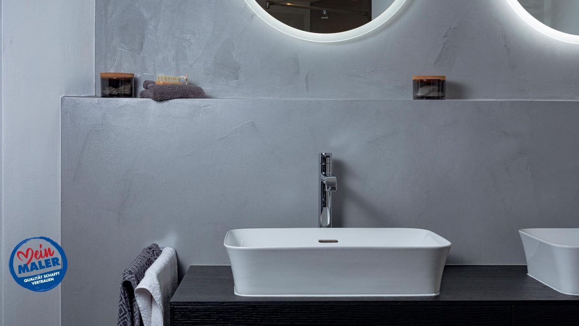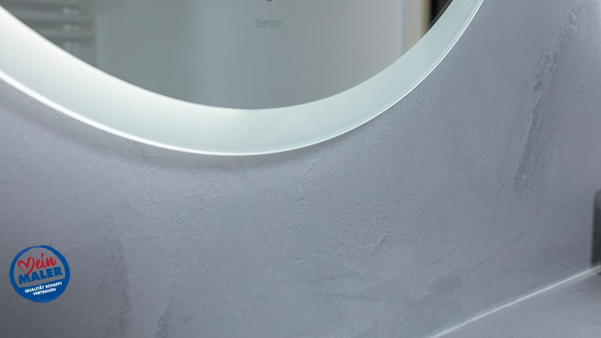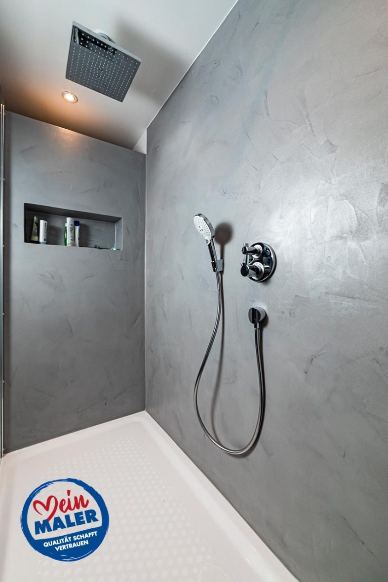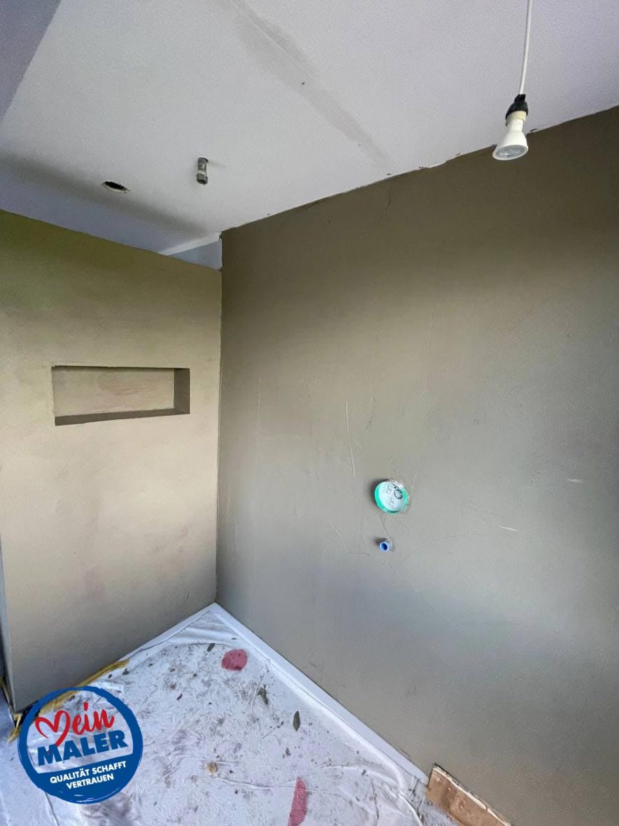 Am zweiten Tag wurde die Abdichtung erstellt und die übrigen Wandflächen vorbereitet. Am dritten Tag haben wir zweimal unser fugenloses Material aufgespachtelt. Zwischendurch wird immer wieder gesaugt und sauber gemacht. Dazu Malermeister Marko Kessling „Wenn man nicht regelmäßig für Sauberkeit und Ordnung im Bad sorgt, bekommt man ganz schnell Probleme mit der Beschichtung.“