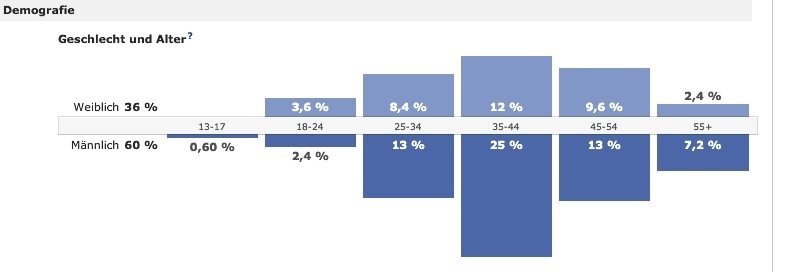 Schauen Sie sich z.B. die folgende Grafik unserer Facebook-Seiten an. Hier zeigt sich z.B., wie sich Alter und Geschlecht unserer Leser zusammensetzt. So können wir z.B. Bedürfnisse besser berücksichtigen und Themen besser fokussieren. Ob man das wirklich braucht? Nein, braucht man nicht wirklich :-) Wir sprechen uns in 5 Jahren nochmal ;-)