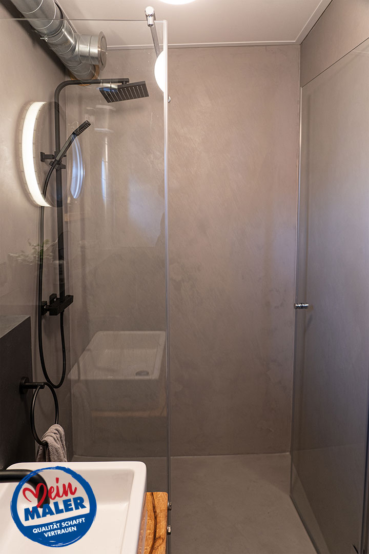 Das fugenlose Badezimmer sorgt für ein besonderes Flair