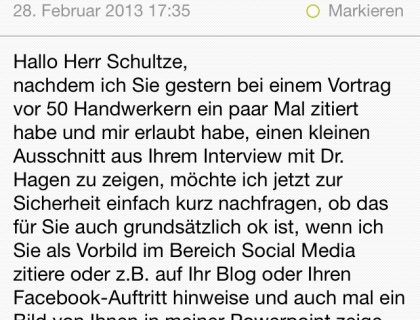 Attraktivität im Handwerk Heute habe ich den Newsletter von handwerk.com erhalten und was lese ich da? Da steht im Teaser (Anleser – Anm. d. Redaktion) … weiter >