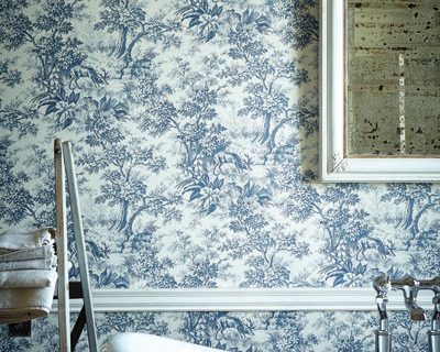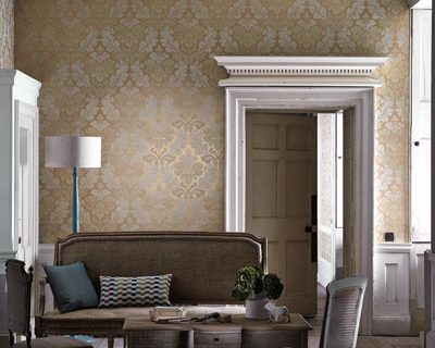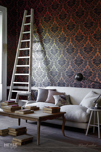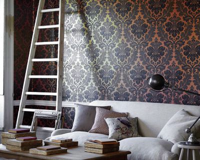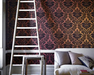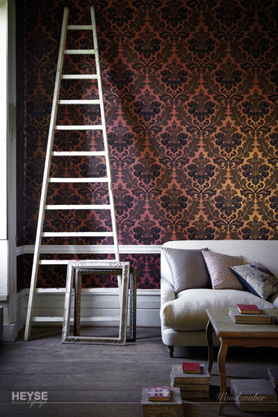 Diese Tapete, eine Überarbeitung eines authentischen französischen Damasts aus dem 19. Jahrhundert, wurde kürzlich als gemaltes Kunstwerk in einem Pariser Studio entdeckt. Entgegen der vorherrschenden Auffassung, dass die Farben, die man früher zur Dekoration verwandte, ausschließlich trist waren, sind die satten Töne, die Schichten und Farbverläufe, die man hier sieht, eine getreue Nachbildung der Originaltapeten und haben dennoch etwas sehr Zeitgemäßes.