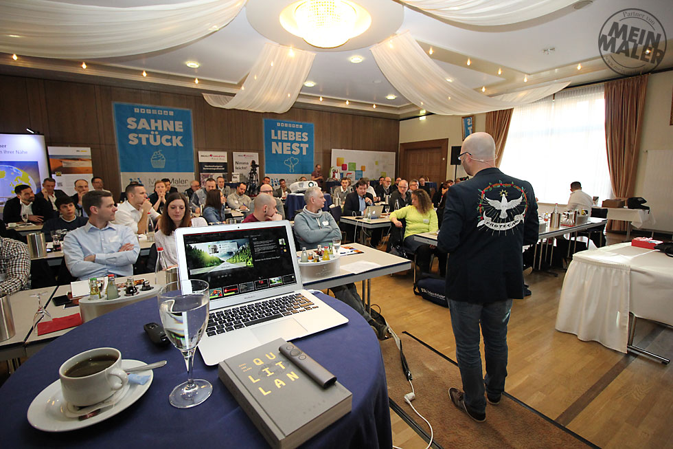 Zum Start in die 2. MeinMaler-Partnertage holte ich erstmal tief Luft und blickte mit großer Freude in die Runde. 60 Teilnehmer durfte ich begrüßen. Ein irres Gefühl und einen gesunden Stolz konnte ich spüren und so ließ ich mir ein wenig Zeit, um in alle Augenpaare zu blicken ❤ bevor ich in meiner Einführungsrede etwas zurückblickte, um den Antrieb und Mehrwert der bisherigen 2 Jahre zu betrachten. Vieles haben wir bereits zusammen erlebt und erarbeitet. Spannende Stories und Mehrwerte aus dem Partner-Alltag sind daraus entstanden. Ehrlich gesagt, ich wusste nicht wo ich anfangen sollte, denn Vieles von dem, was bisher geschah erfüllt mich sehr und zeigt mir wie gut und richtig alles ist.