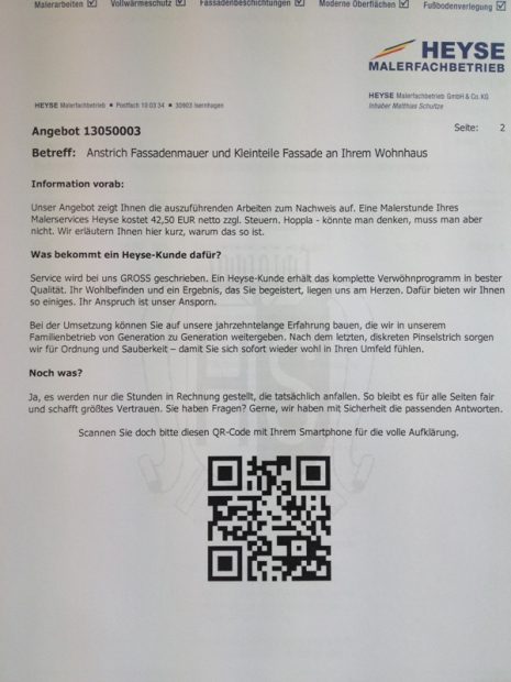 #9430 - Aufkärung Stundensatz mit QR-Code bei Maler Heyse